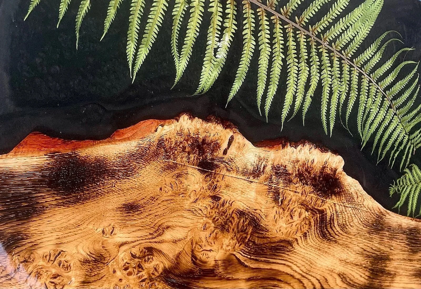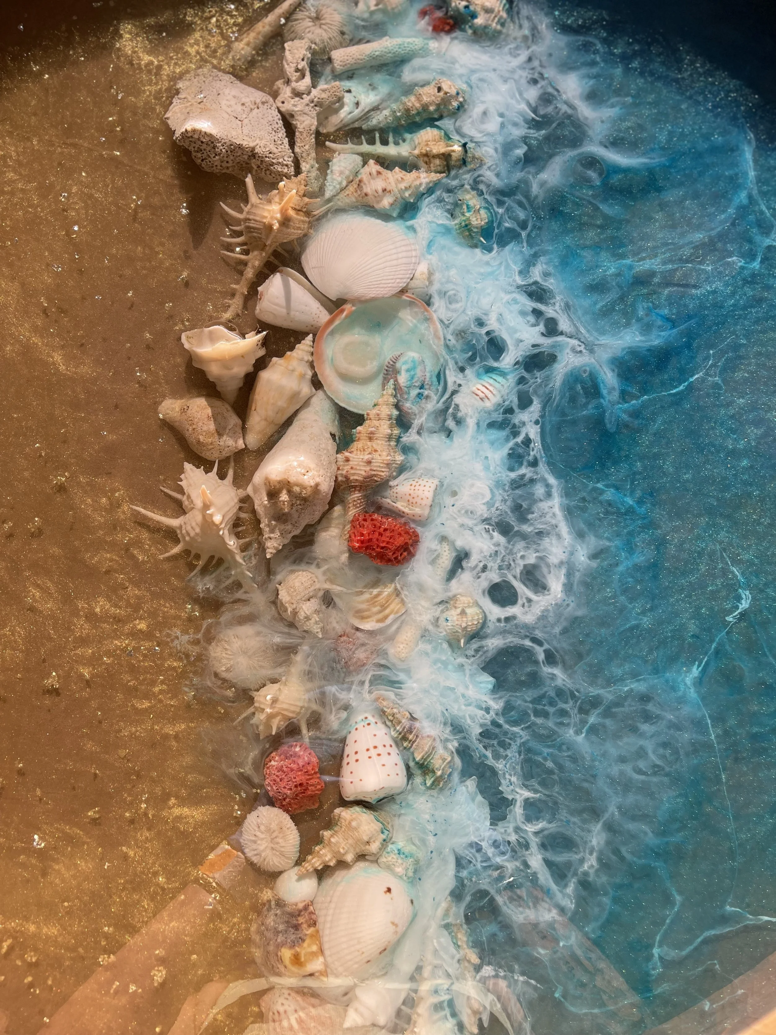 Resin Art inspired by Nature and Adventure using Epoxy Resin to create captivating and durable pieces that often incorporate natural elements like flowers, leaves, shells.